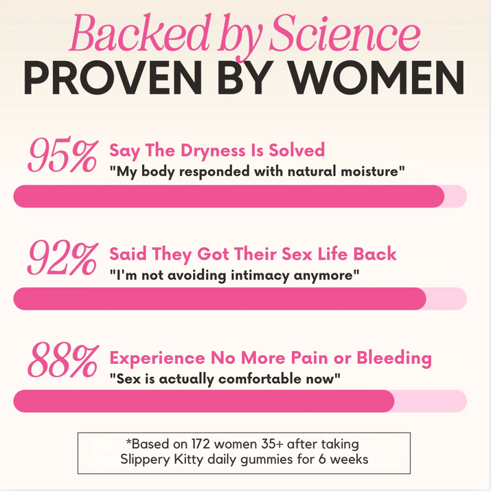 Yes. Vaginal dryness happens when your body stops producing natural lubrication—whether from hormonal changes, medications, or other factors. Slippery Kitty's Bacillus Coagulans restores vaginal pH balance and healthy flora, while Slippery Elm directly supports moisture production. Together, they address what caused the dryness—naturally increasing lubrication your body should be producing.